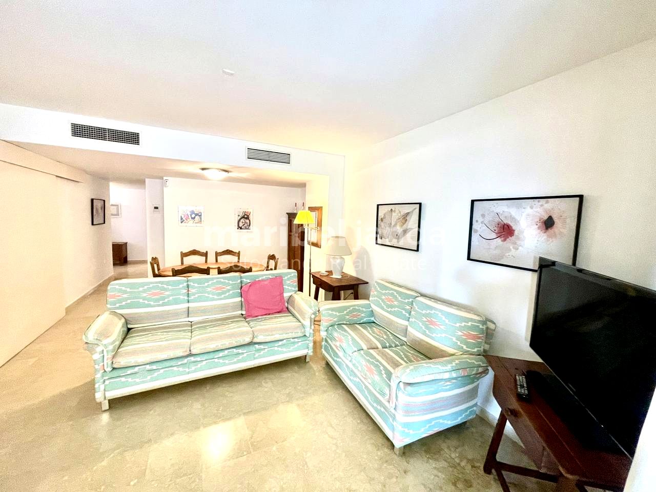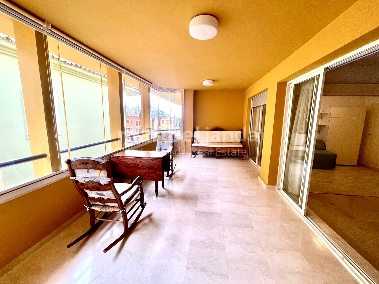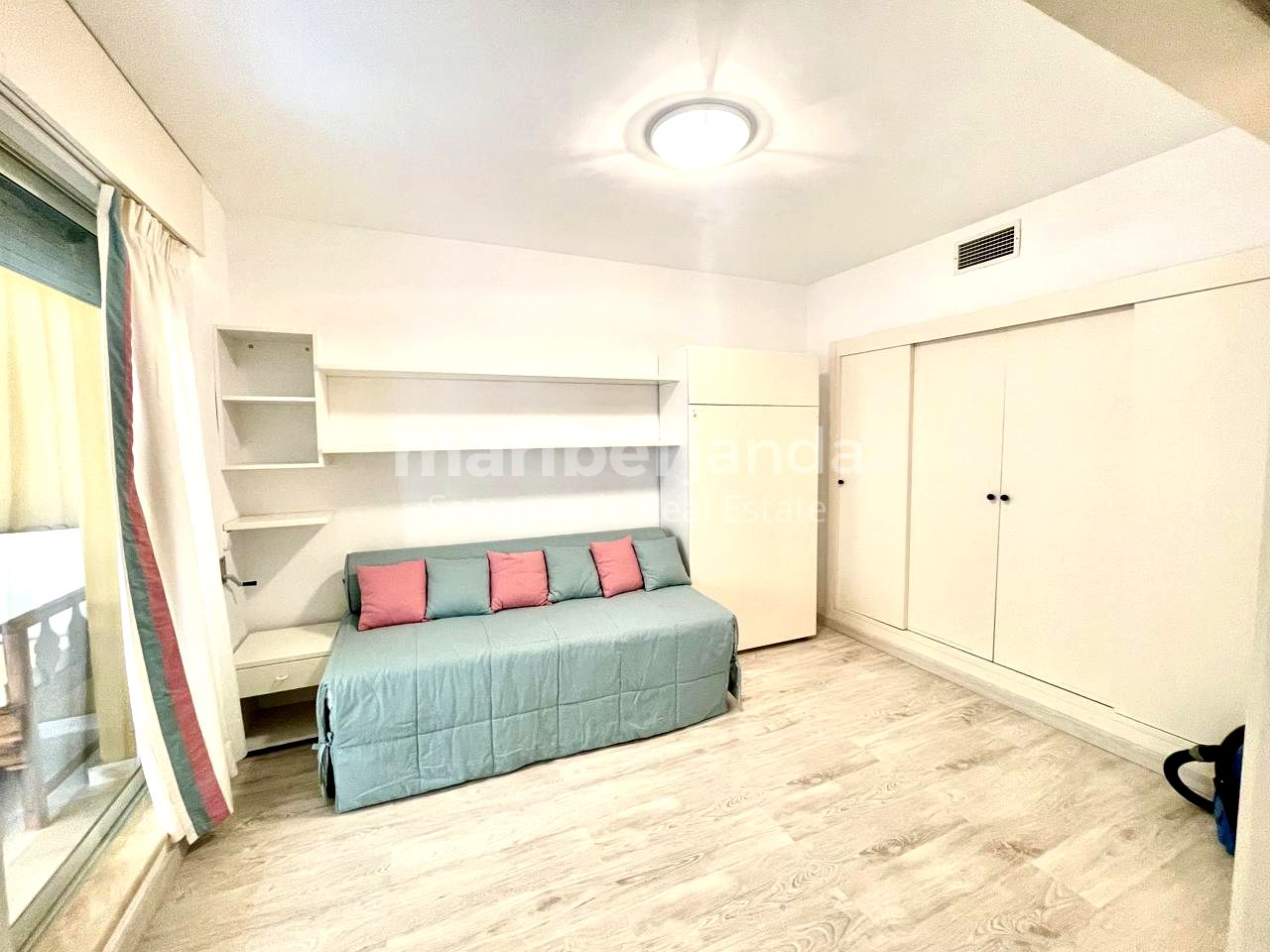 Apartamento de dos dormitorios y dos cuartos de baño, dormitorio principal con baño en-suite, hall, salón-comedor, cocina totalmente equipada. Terraza cubierta y acristalada. Segunda planta, en edificio con ascensor. Armarios empotrados en dormitorios. Mármol en suelos y baño, excepto en dormitorios. Se encuentra ubicado en pleno corazón del Puerto Deportivo y a escasos metros de la playa, así como de la zona de ocio, donde pueden encontrar los restaurantes, bares, tiendas. Vigilancia 24 horas. Dispone de una Plaza de aparcamiento en el mismo edificio con acceso directo desde el ascensor.