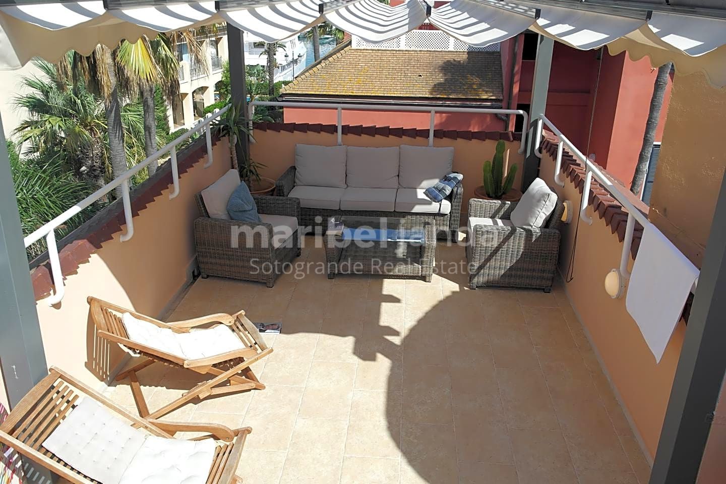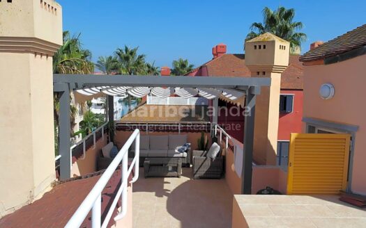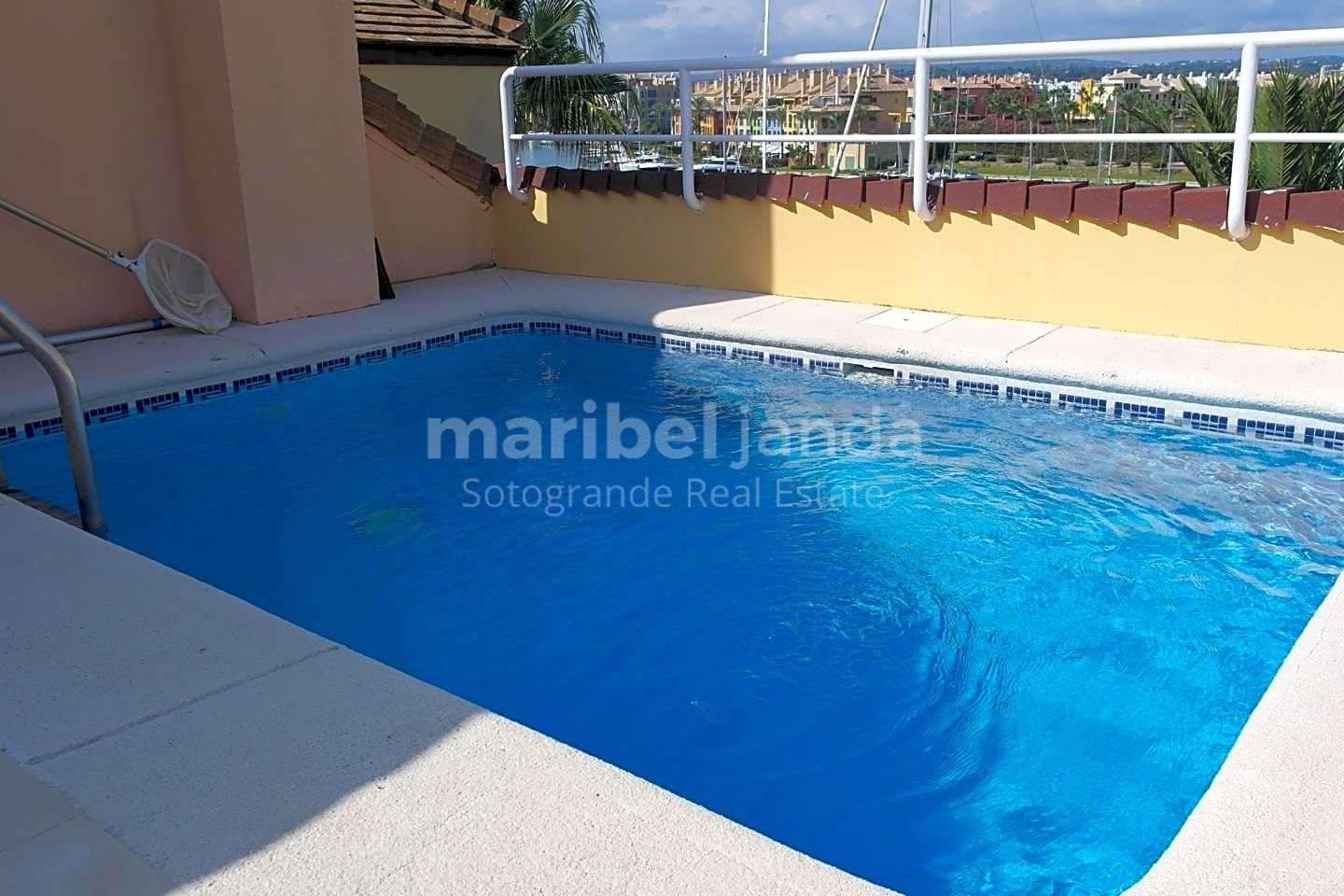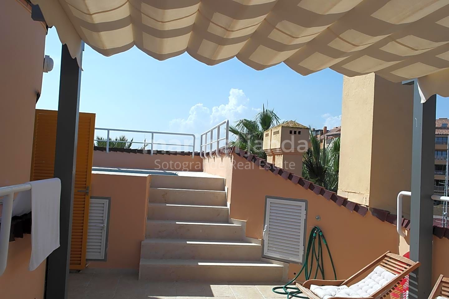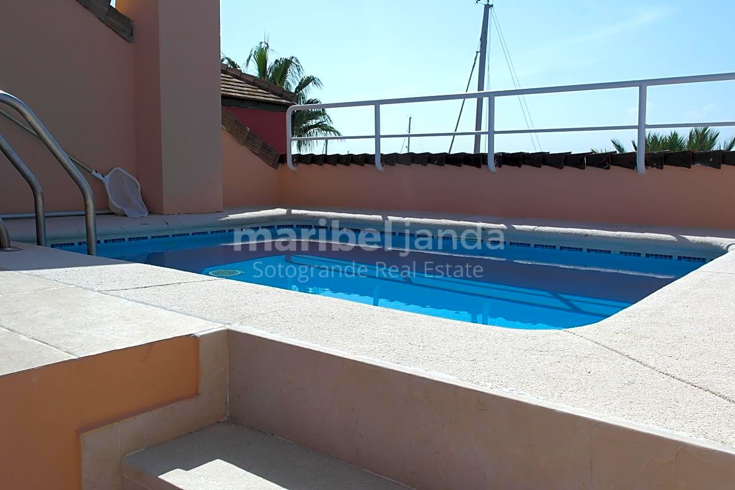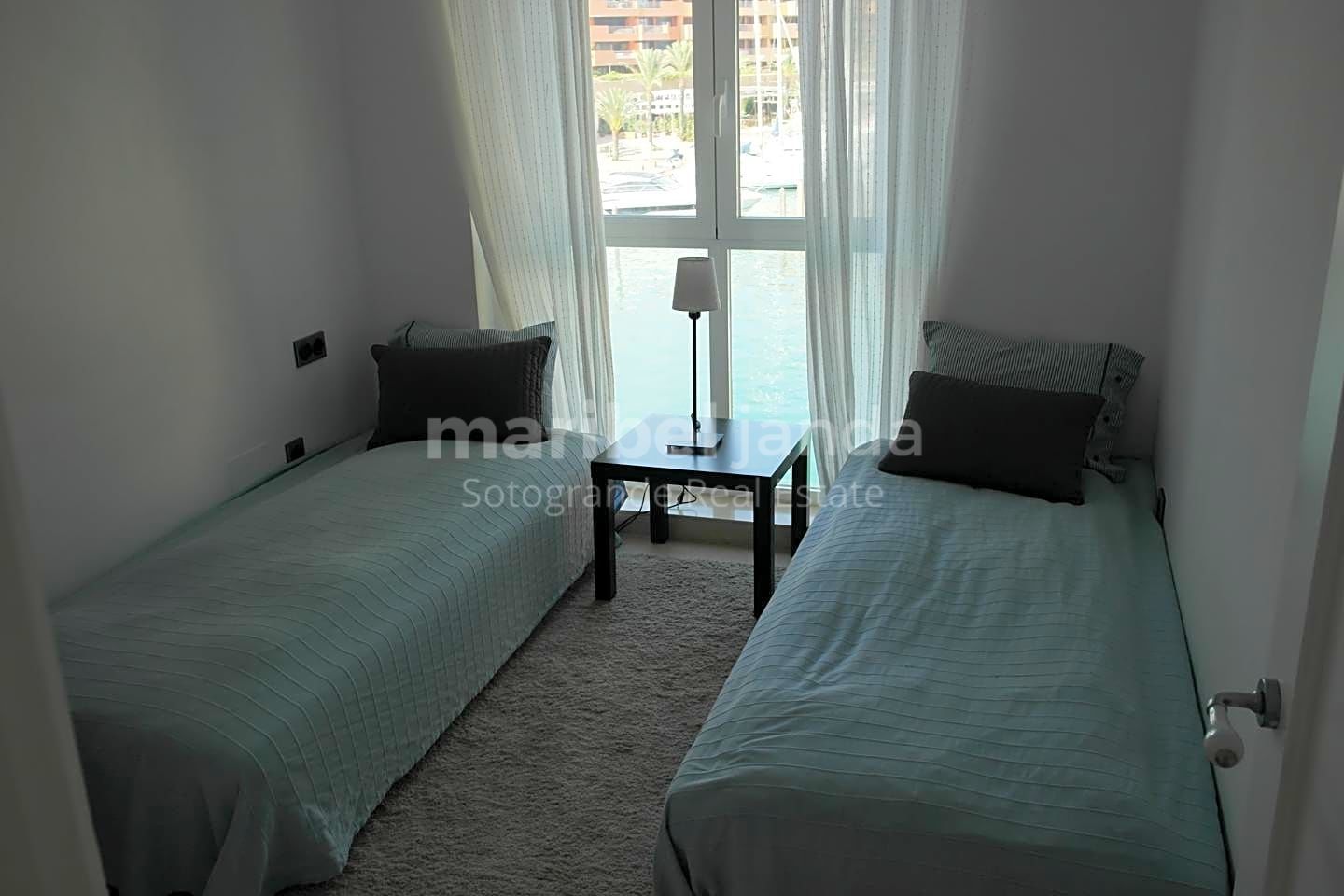 Bonito ático dúplex con tres dormitorios y dos cuartos de baño. Dormitorio principal con baño en-suite. Los otros dos dormitorios comparten baño. Luminoso salón-comedor con chimenea. Terraza con magníficas vistas de La Marina. Cocina reformada totalmente equipada e integrada en el salón, En la primera planta nos encontramos una bonita terraza/Solarium con piscina privada. Esta propiedad dispone de una plaza de aparcamiento. Armarios empotrados. Aire acondicionado frío/calor. Wiffi. Situado a poca distancia a pie del Puerto deportivo, zona de ocio y playa.