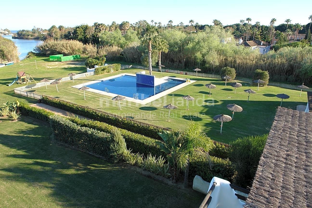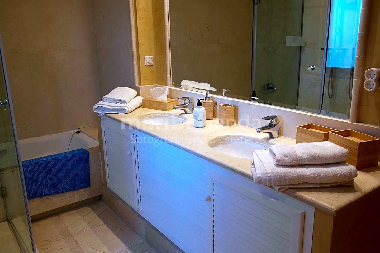 Bonito apartamento situado en primera planta, con vistas hacia jardines y río Guadiaro. Esta propiedad ofrece 3 dormitorios y 2 cuartos de baño. Dormitorio principal con baño en-suite. Los otros dos dormitorios comparten baño y cada uno tiene una pequeña terraza. Amplio salón-comedor con chimenea. Confortable terraza cubierta con bonitas vistas. Cocina totalmente equipada. Armarios empotrados en dormitorios. Mármol en suelos y baños. Aire acondicionado frío/calor. Plaza de aparcamiento comunitaria. Urbanización privada con servicio de portería. Vigilancia 24 horas. Piscina comunitaria. Pistas de pádel. Gimnasio con jacuzzi y sauna. Zona de juego para niños.