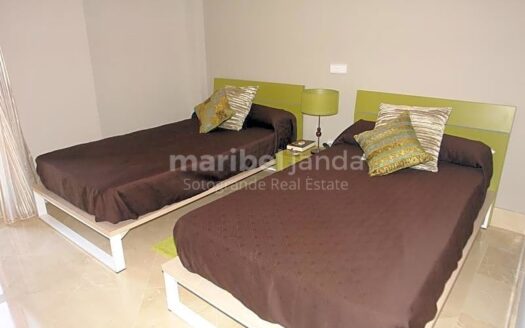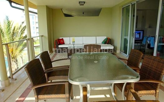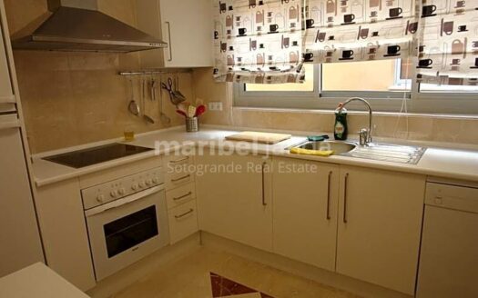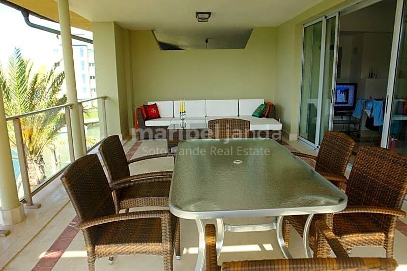Fantástico apartamento situado en segunda planta en Ribera del Corvo. Esta propiedad dispone de 3 dormitorios y 2 cuartos de baño. Dormitorio principal con baño en-suite. Amplio y luminoso salón-comedor con chimenea y acceso a una bonita y agradable terraza cubierta con magníficas vistas hacia la Marina. Cocina totalmente equipada. Aire acondicionado frío/calor. Armarios empotrados. Mármol en suelos y baños. Dispone de una plaza de garaje y trastero incluido en el precio.