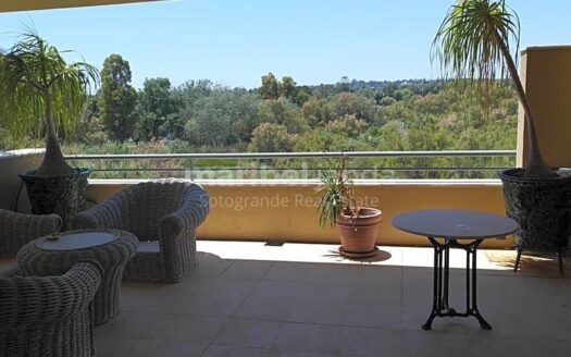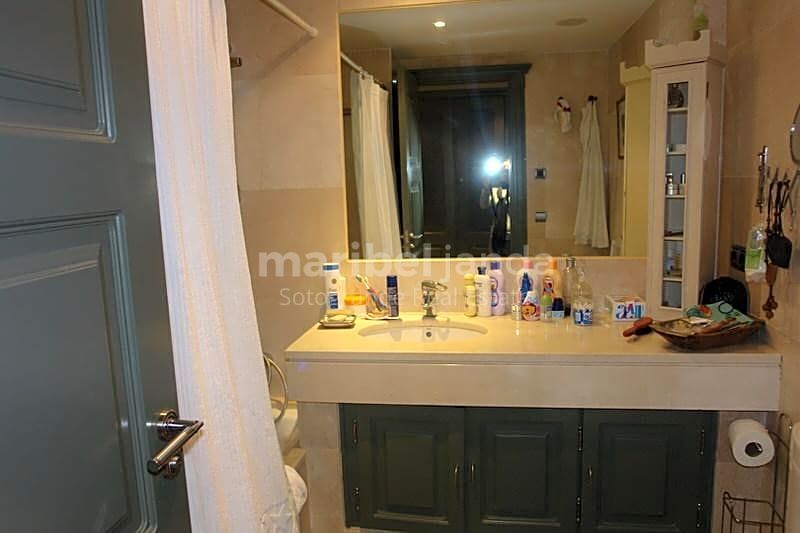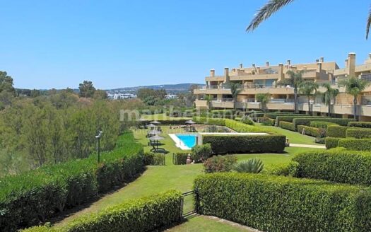 Amplio apartamento en la urbanización privada Ribera del Río. La vivienda está en primera planta, y tiene 3 dormitorios y 3 cuartos de baño. El dormitorio principal y segundo dormitorio con baños en-suite. Amplio salón-comedor con chimenea y acceso a una bonita terraza cubierta con vistas al rio y zonas comunes. Cocina totalmente equipada. Suelos de mármol. Armarios empotrados. Aire acondicionado frío/calor. Jardines y piscina comunitarios. Tiene 1 plaza de garaje.