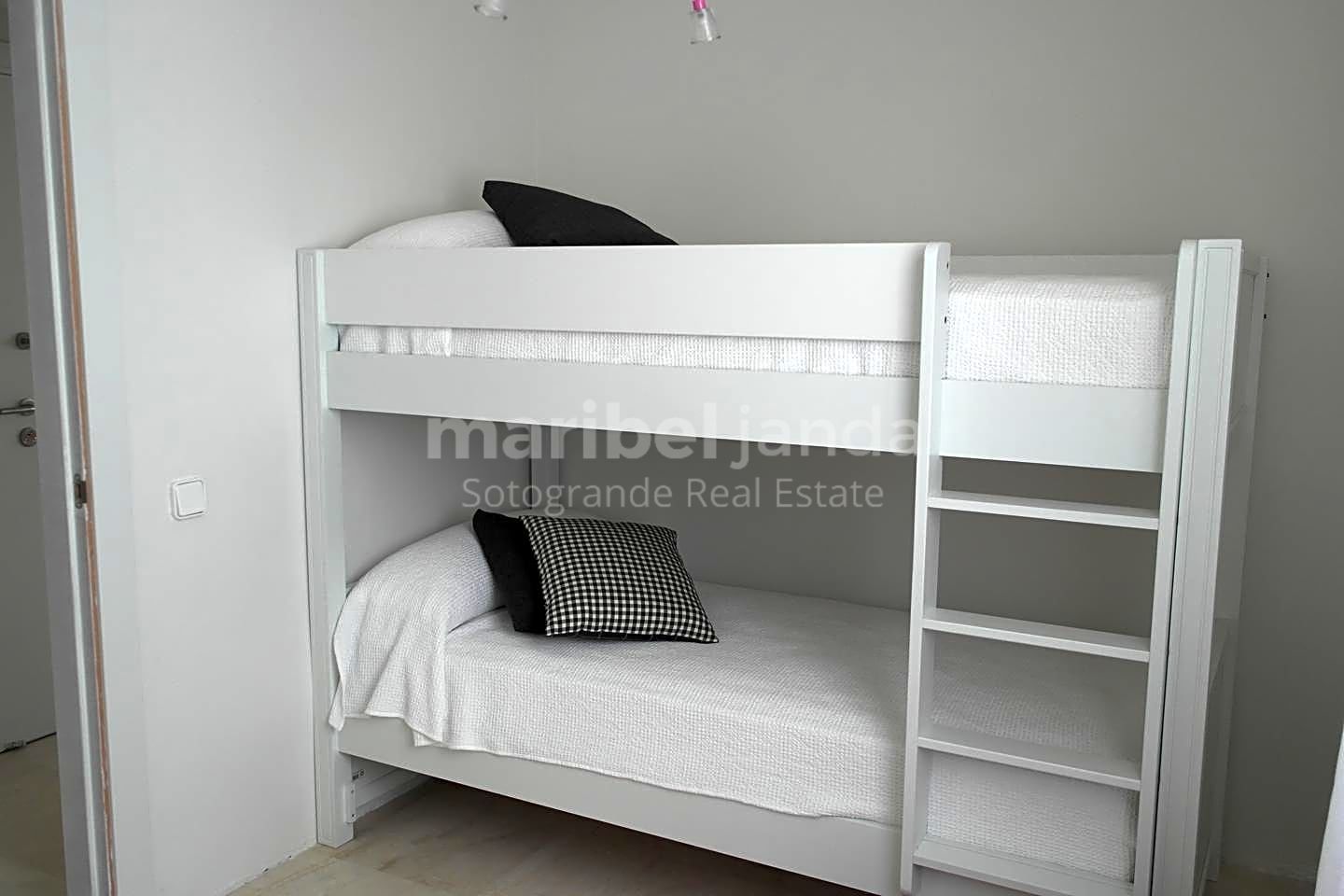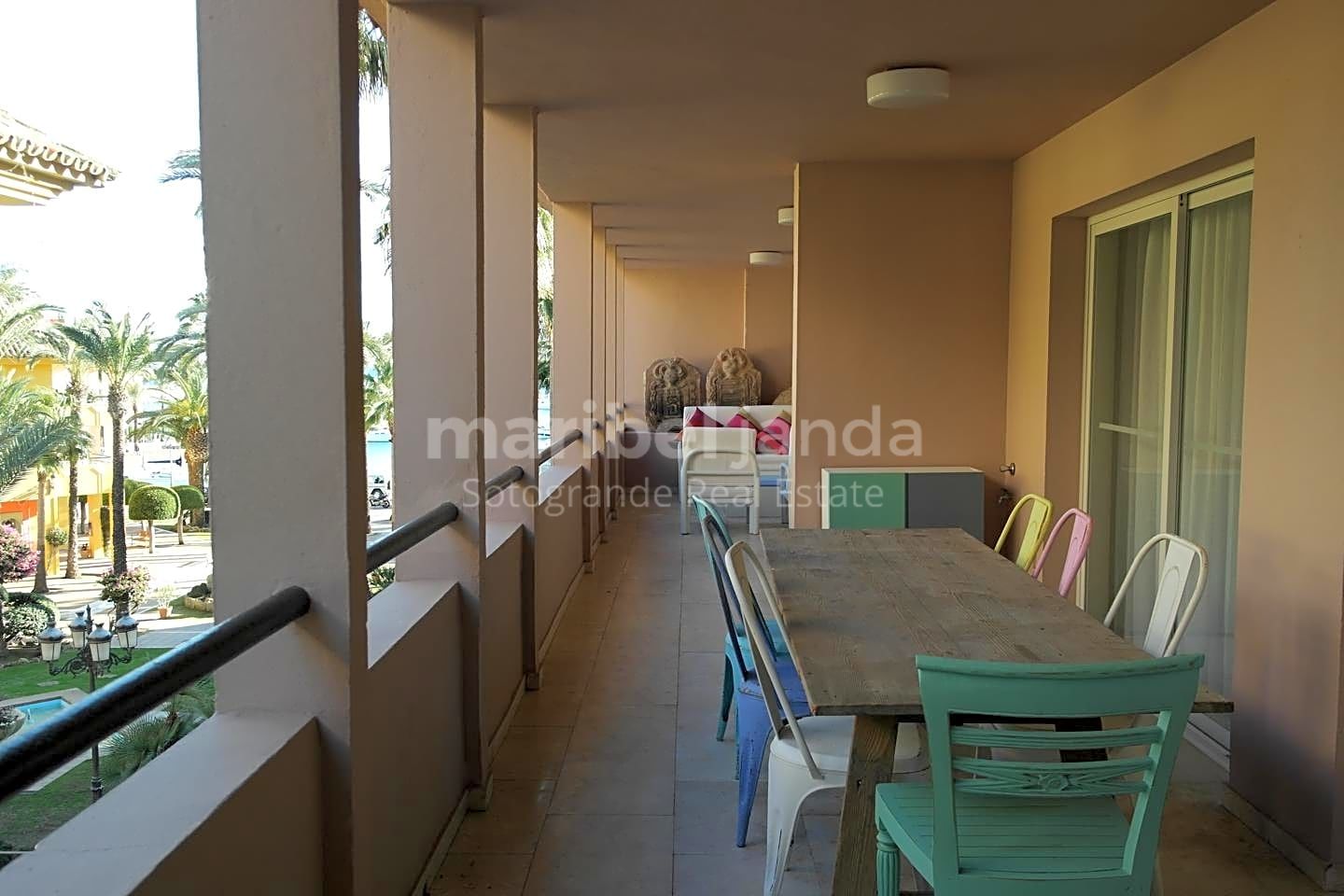 Magnífico apartamento en segunda planta. Esta vivienda consta de dos apartamentos unidos, y nos ofrece 5 dormitorios y 3 cuartos de baño. Tres de los dormitorios tienen acceso a dos terrazas independientes. Amplio salón-comedor con chimenea y con acceso a una terraza con vistas con zona de estar y comedor. Cocina totalmente reformada y equipada. Armarios empotrados. Aire acondicionado frío/calor. Plaza de aparcamiento. A escasos metros de la playa y en pleno corazón del Puerto Deportivo y zona de ocio.