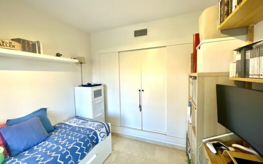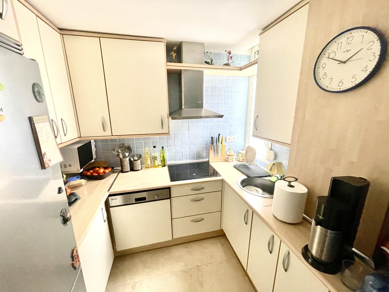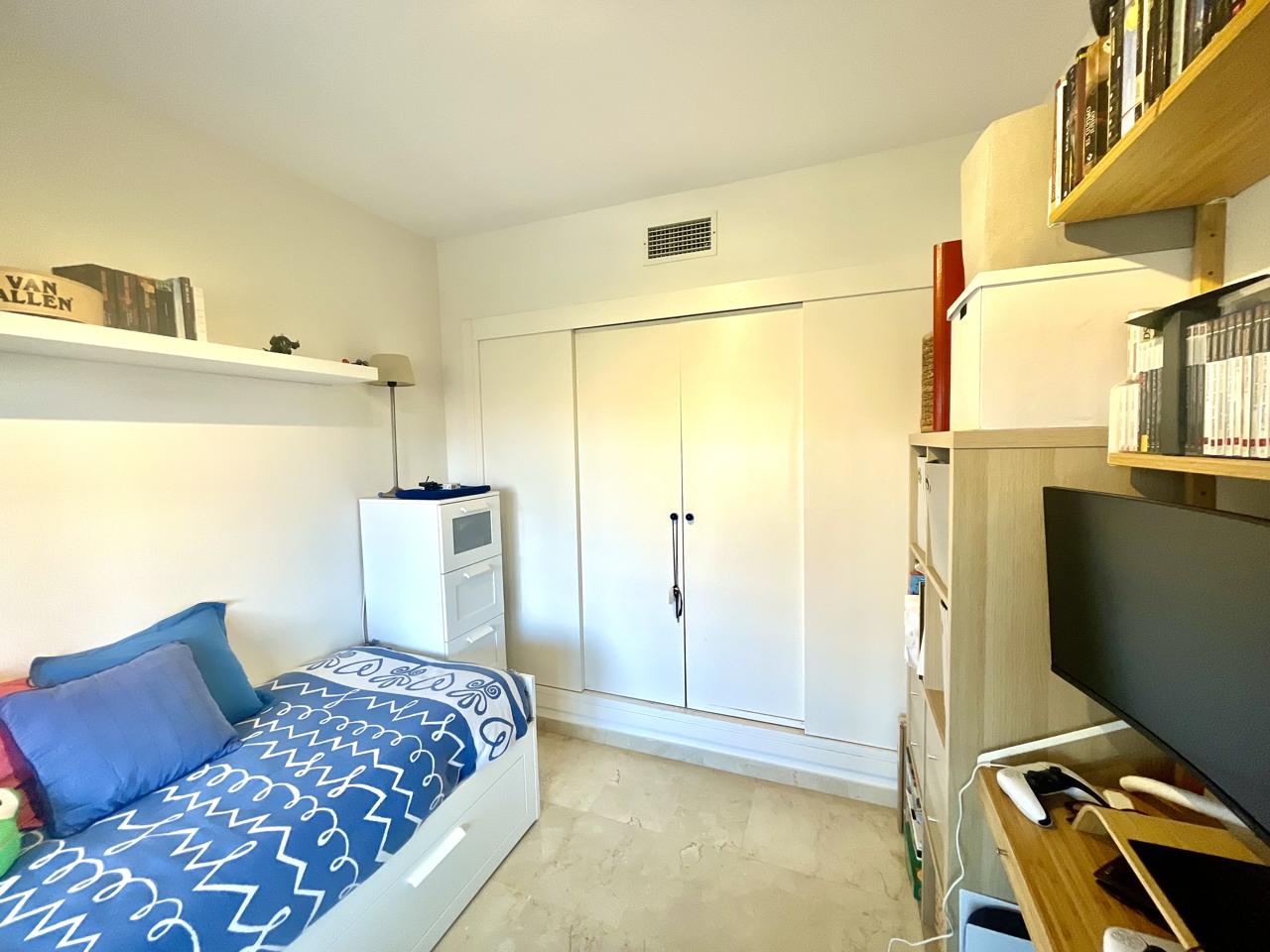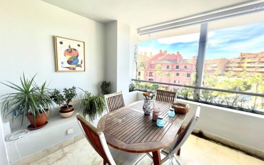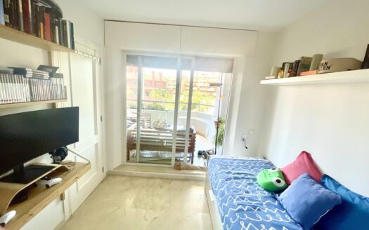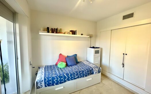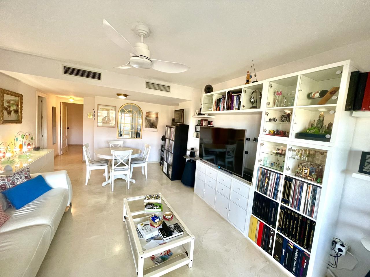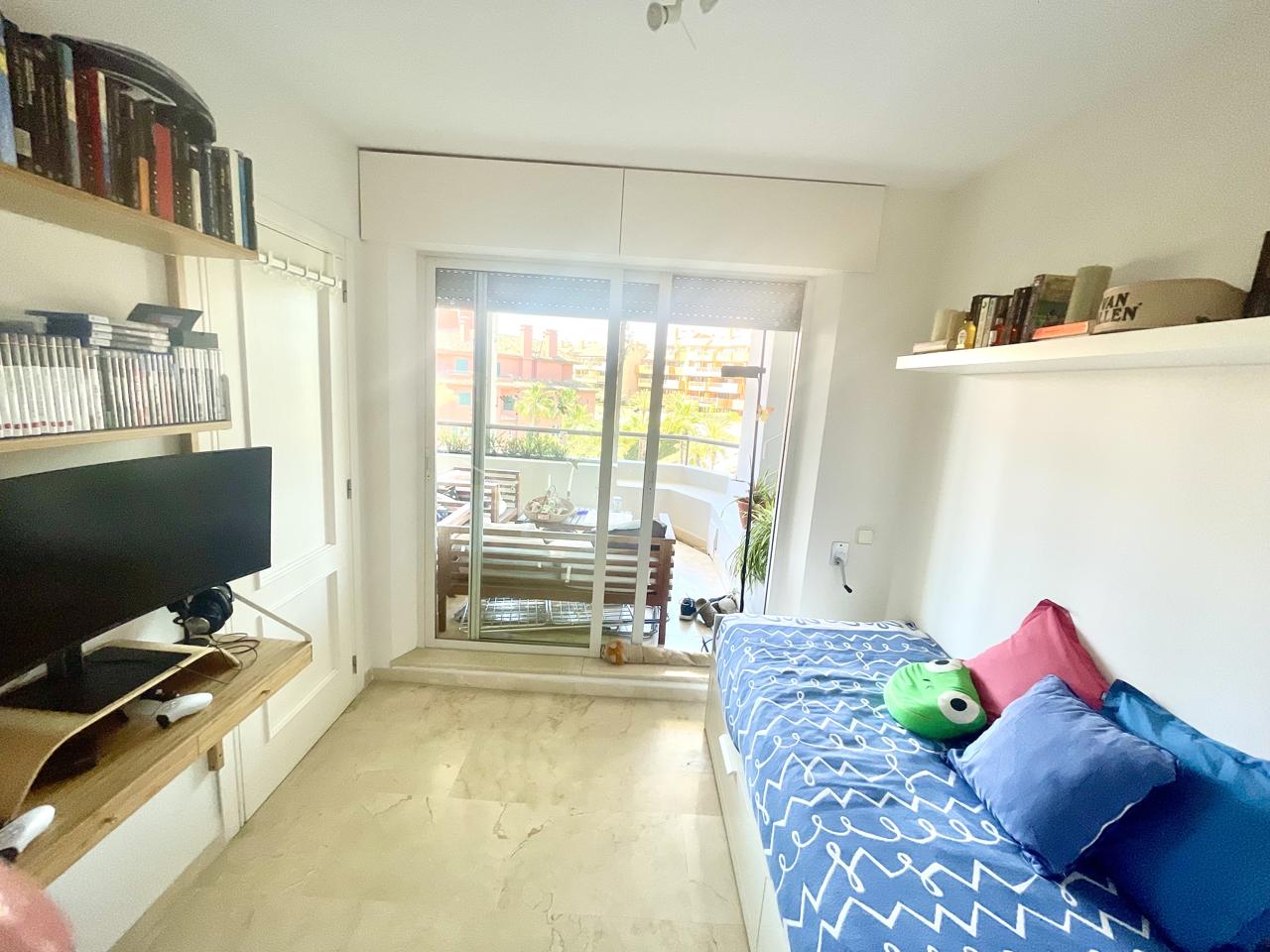 Este apartamento originalmente era de 2 dormitorios y 2 cuartos de baño. Actualmente ha sido reformado y dispone de 3 dormitorios. Se compone de hall de entrada, Cocina totalmente amueblada y equipada. Dormitorio principal con baño en-suite. Los otros dos dormitorios comparten baño. El segundo baño al estar ubicado en un pasillo también se puede utilizar como baño de cortesía. Tiene un amplio y luminoso salón-comedor con acceso a una agradable terraza cubierta con vistas. Desde uno de los dormitorios también se accede a la terraza. Armarios empotrados en dormitorios. Mármol en suelos y baños. Aire acondicionado frio/calor. Ubicado en pleno corazón del Puerto Deportivo y a escasos metros de la playa, zona de ocio y tiendas. Vigilancia 24 horas. Orientación Oeste. Segunda planta en edificio con ascensor y acceso para personas con movilidad reducida.