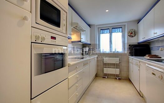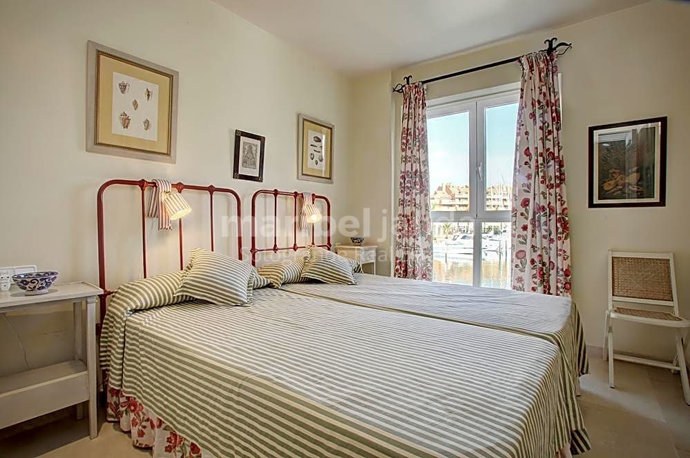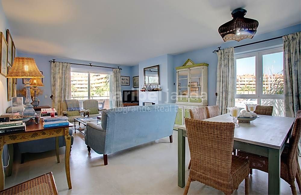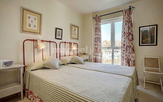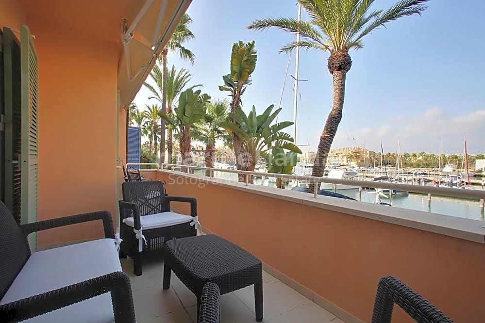 Bonito y agradable apartamento situado en primera planta en Ribera del Arlequín. Este apartamento consta de 3 dormitorios y 2 cuartos de baño. Dormitorio principal con baño en-suite. Amplio salón-comedor con chimenea y acceso a una terraza con fantásticas vistas de la Marina. Desde el dormitorio principal se accede también a la terraza. Cocina totalmente equipada. Aire acondicionado frío/calor. Mármol en suelos y baños. Armarios empotrados. Dispone de una plaza de aparcamiento y trastero. Orientación SurOeste. Ubicado apoca distancia a pie de la zona de ocio y de la playa.