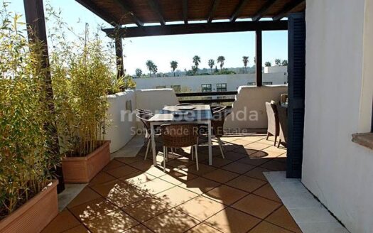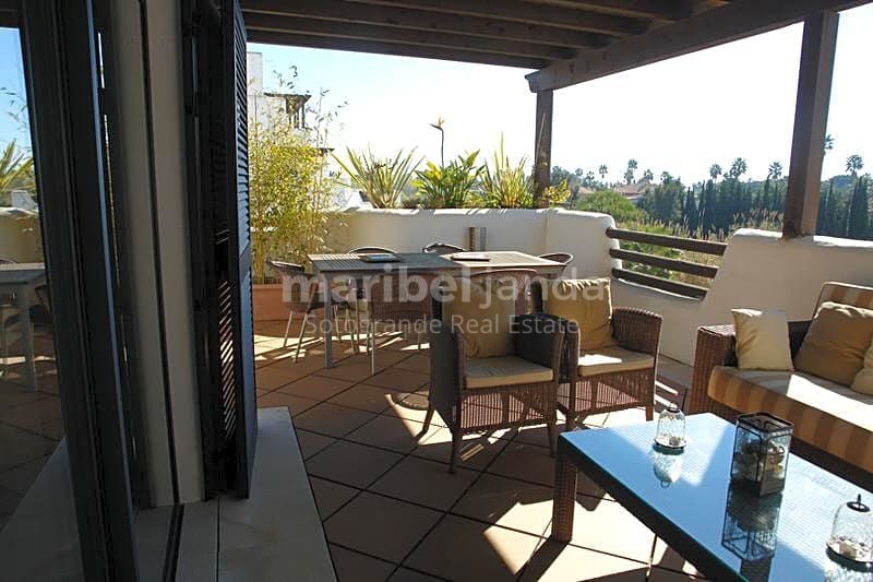 Espectacular ático en la urbanización privada El Polo. Esta vivienda tiene 4 dormitorios y 4 cuartos de baño. Salón. Comedor independiente. Cocina totalmente equipada. Varias terrazas de gran tamaño, cubiertas en algunas zonas. En una de las terrazas, hay un cuarto de estar, que también se puede utilizar como dormitorio. Aire acondicionado frio/calor. Cuenta con 3 plazas de garaje y 1 trastero. Urbanización con servicio de conserjería, piscina, jardines comunitarios, zona de juego para los peques, gimnasio con jacuzzi y pistas de pádel. Zona exterior de aparcamiento.