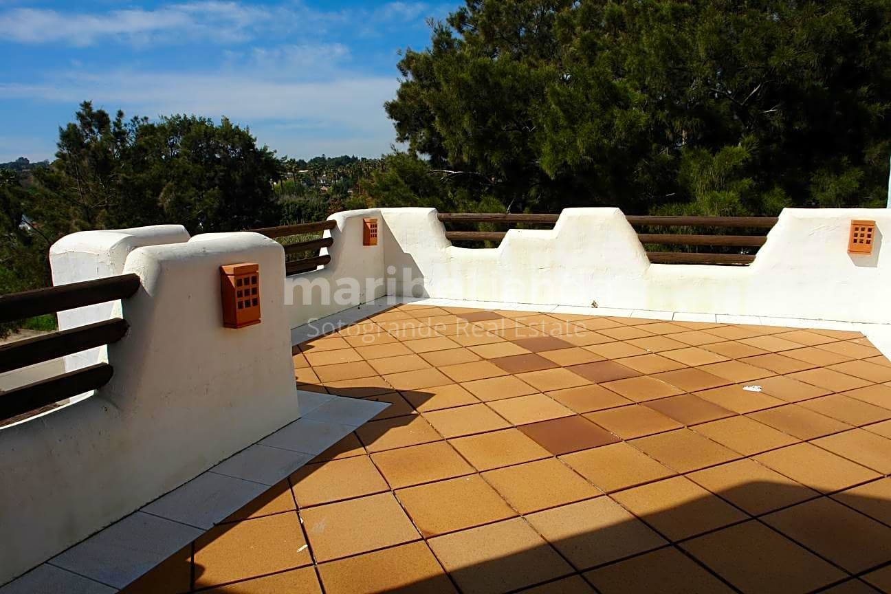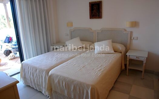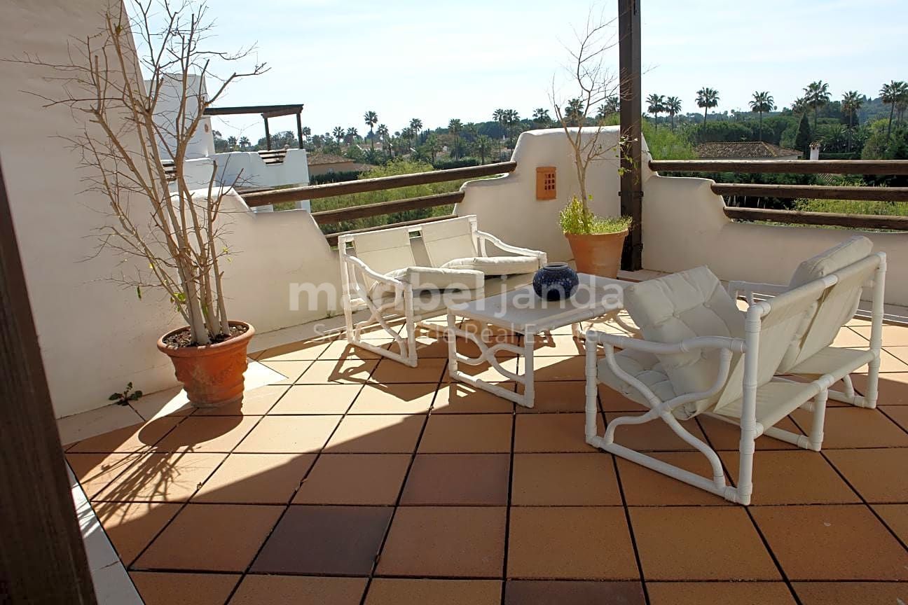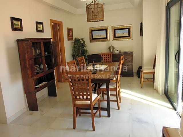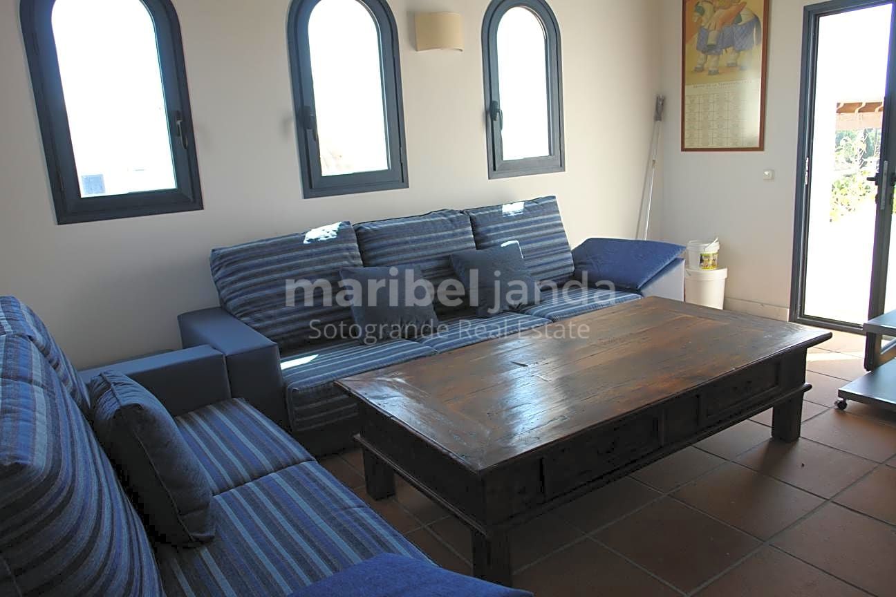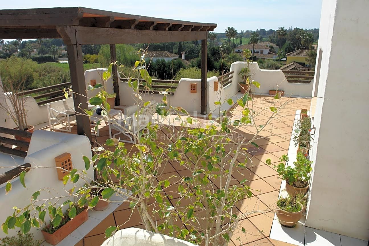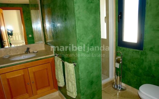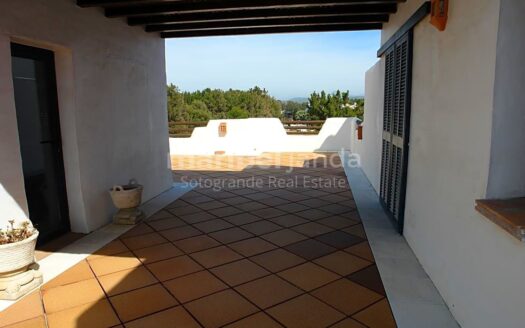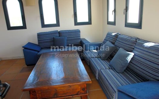 Fantástico ático en la urbanización privada de El Polo de Sotogrande. Consta de de 4 dormitorios con cuartos de baño en-suite, y aseo de invitados. Amplio y luminoso salón-comedor con dos ambientes, separados por una chimenea, con acceso a una gran terraza con vistas, en la cual se encuentra un torreón totalmente cerrado. Los dormitorios también disponen de acceso a otra terraza con torreón. Cocina totalmente equipada. Aire acondicionado y calefacción. Ascensor desde el garaje hasta el hall de entrada de la vivienda. Tiene 2 plazas de aparcamiento y trastero. Urbanización privada con piscina comunitaria, pistas de paddle y gimnasio. Servicio de conserjeria y seguridad 24 horas.