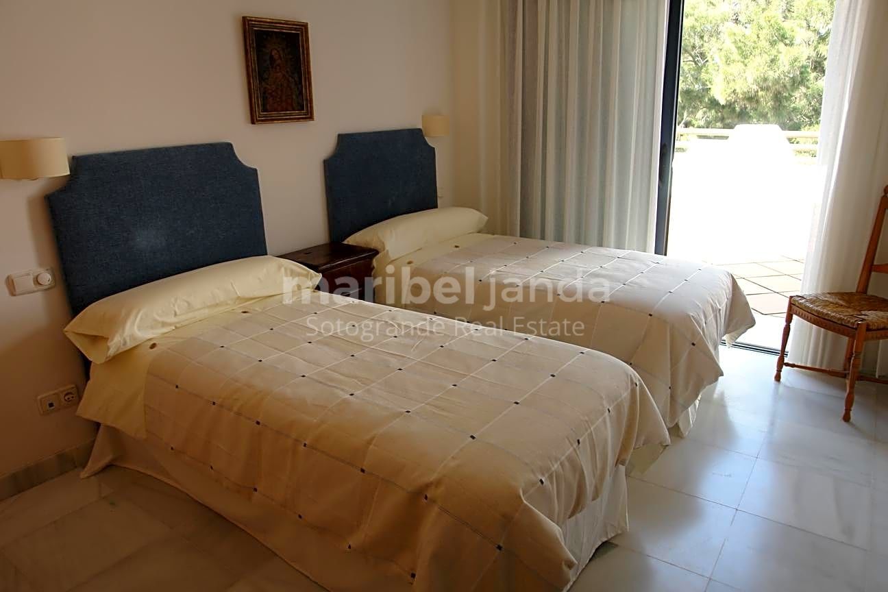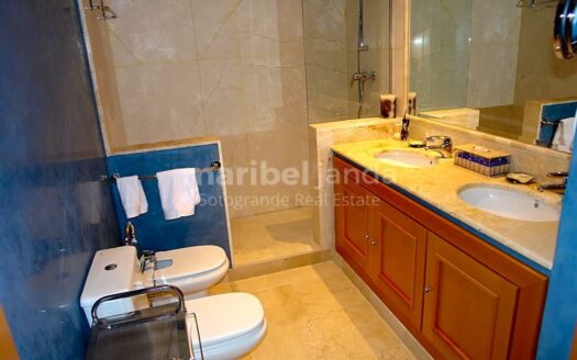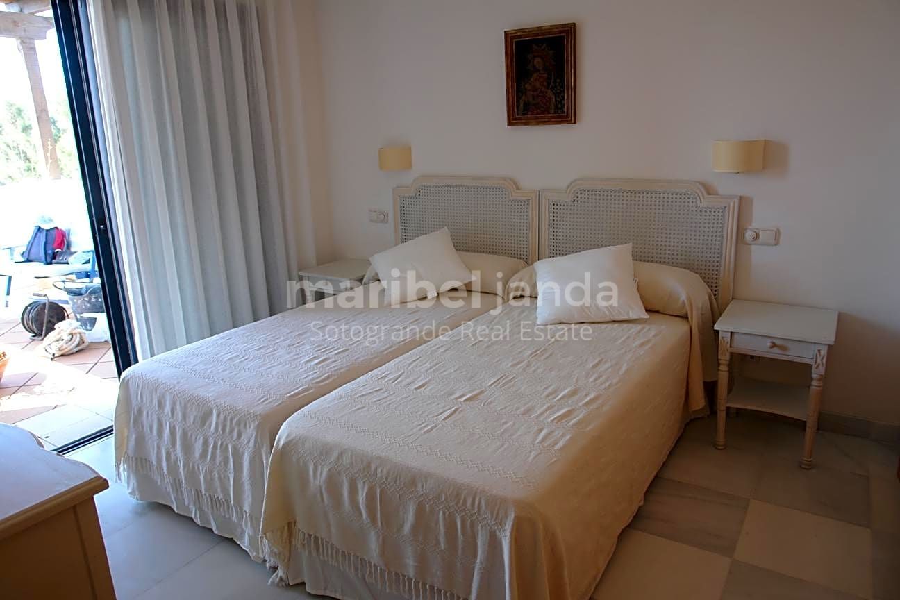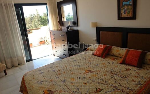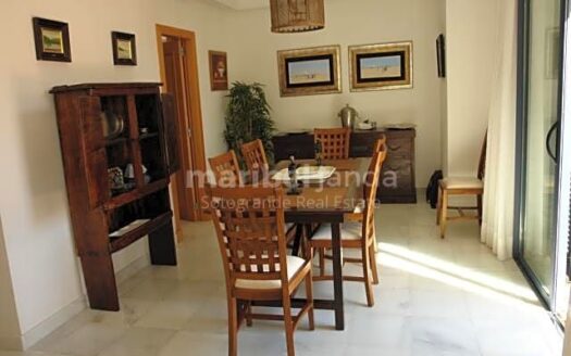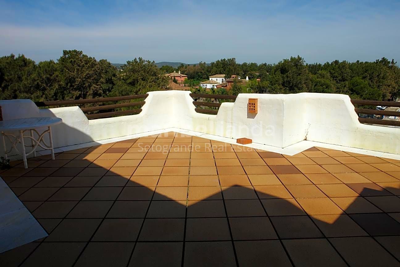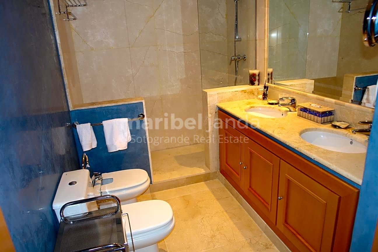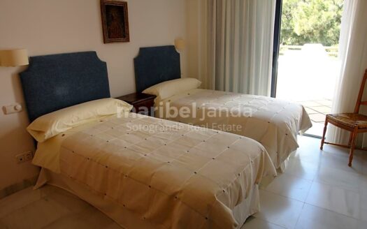Fantástico ático en la urbanización privada de El Polo de Sotogrande. Consta de de 4 dormitorios con cuartos de baño en-suite, y aseo de invitados. Amplio y luminoso salón-comedor con dos ambientes, separados por una chimenea, con acceso a una gran terraza con vistas, en la cual se encuentra un torreón totalmente cerrado. Los dormitorios también disponen de acceso a otra terraza con torreón. Cocina totalmente equipada. Aire acondicionado y calefacción. Ascensor desde el garaje hasta el hall de entrada de la vivienda. Tiene 2 plazas de aparcamiento y trastero. Urbanización privada con piscina comunitaria, pistas de paddle y gimnasio. Servicio de conserjeria y seguridad 24 horas.